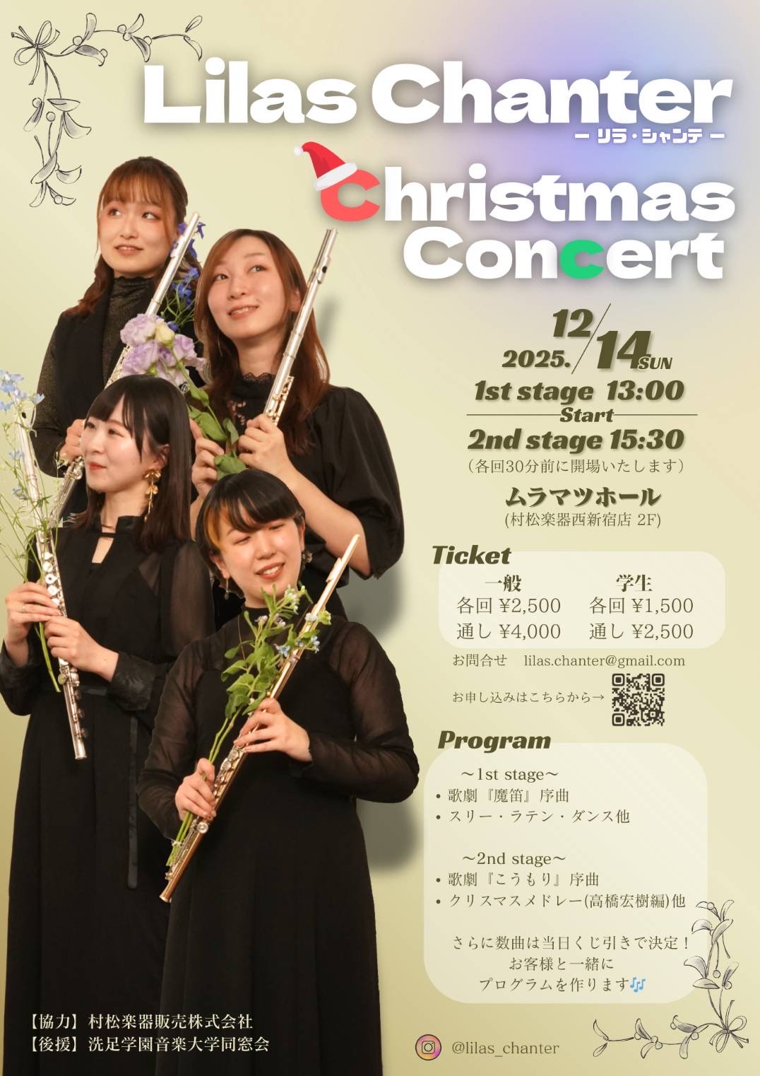 洗足学園音楽大学大学院で出会い結成したフルートカルテット!クリスマスコンサートを同日に2公演行います!