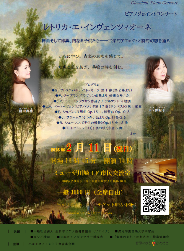 歴史的知識に基づく演奏を取り入れたスタイルで、古楽から古典派、ロマン派まで幅広く演奏するピアノジョイントコンサート